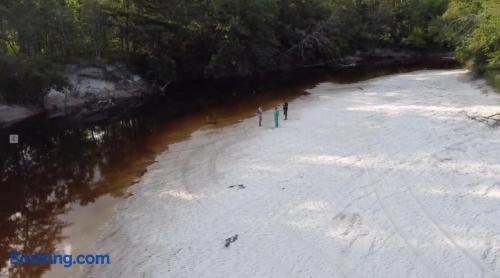 This is a beautiful and bare river front property. The river has plenty of sand on the banks to pitch a tent or you may set up camp among the trees.